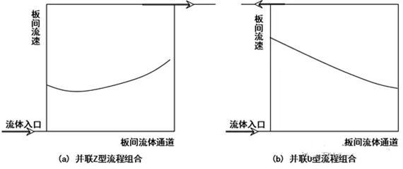 對于板型對稱、冷熱介質(zhì)流量相當(dāng)?shù)那闆r,宜采用等程布置,使介質(zhì)流向?yàn)槿媪鳎?